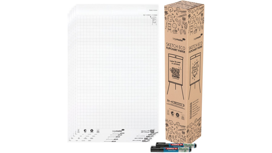 Papier pour chevalet durable Legamaster SKETCH ECO – quadrillé (lot de 5 blocs de 20 feuilles)